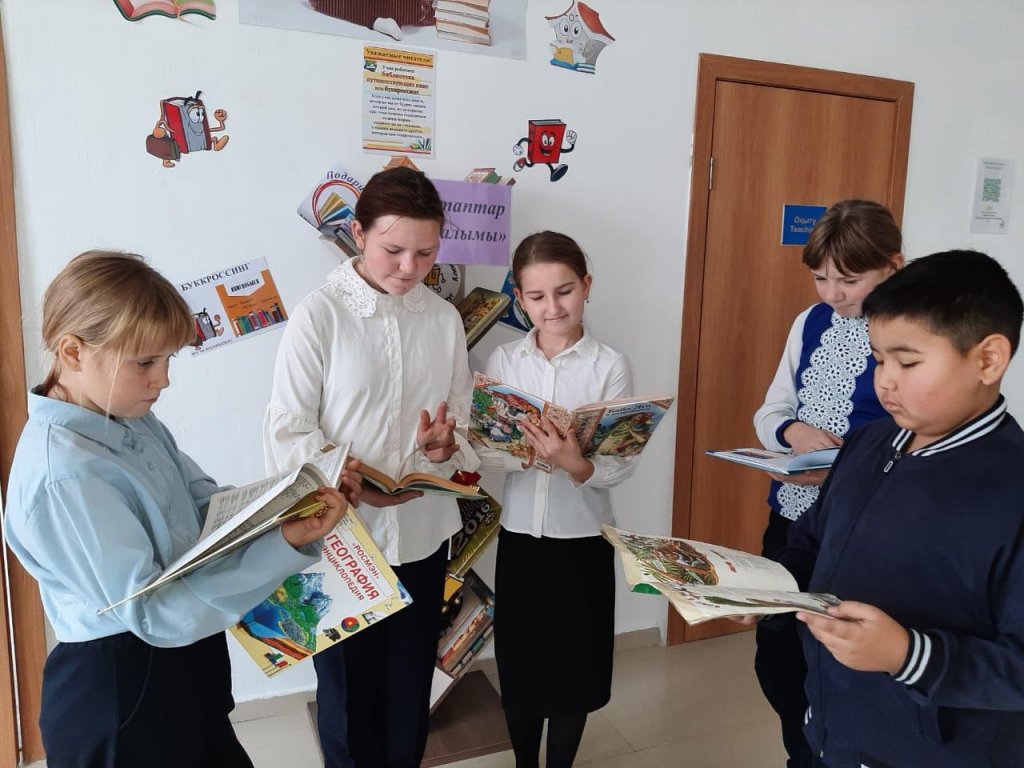 Мектептің тәрбие жұмысының жоспарына сәйкес кітапханада кітапханашы күніне арналған "Кітаптар айналымы" акциясы өткізілді. "Балалар кітапханасы" жобасы-оқуға және білім алуға қызығушылықты қалыптастыру.