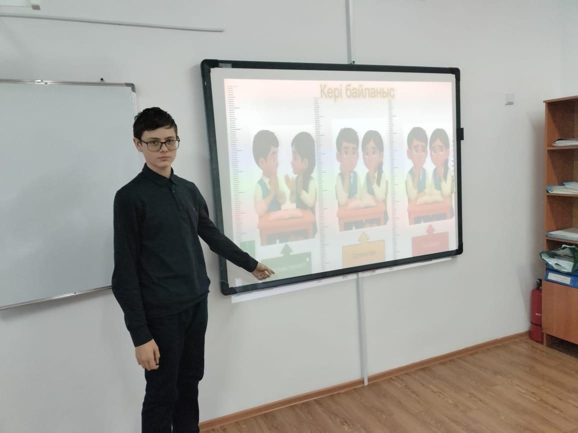 Қазақ тілі мен әдебиеті онкүндігінің аясында 8"Б" сыныбында "Жан-жануарлар татулығы"тақырыбында ашық сабақ өткізілді.Пән мұғалімі. Г.А.Жұмабаева.