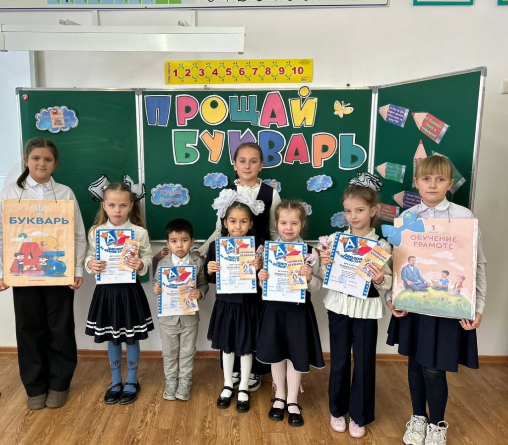 "Ақсай селосының ЖББМ"КММ. 1-сыныпта бірінші сынып оқушыларында сауаттылықты оқытудың бірінші кезеңін аяқтауға арналған "Әліппемен қоштасу" мерекелік іс-шарасы өтті. Мереке жылы және достық атмосферада өтті. Іс-шара барысында балалар алған білімдерін көрсетті: жұмбақтар шешті, сөздер құрастырды, қысқа мәтіндер оқыды, ойын конкурстарына қатысты. Балалар оқуды, жазуды және ұжымда жұмыс істеуді үйренгендерін көрсетті.